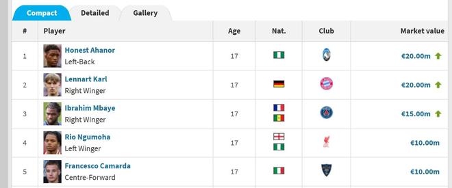 10月14日,德国转会市场网站更新了本期德甲联赛球员的身价,17岁拜仁小将伦纳特-卡尔的身价从150万欧元暴涨至2000万欧元,涨幅高达1233.3%,成为2008年出生球员中身价并列最高的一位。另一位达到2000万欧元的该年龄段球员是亚特兰大队小将阿哈诺尔。